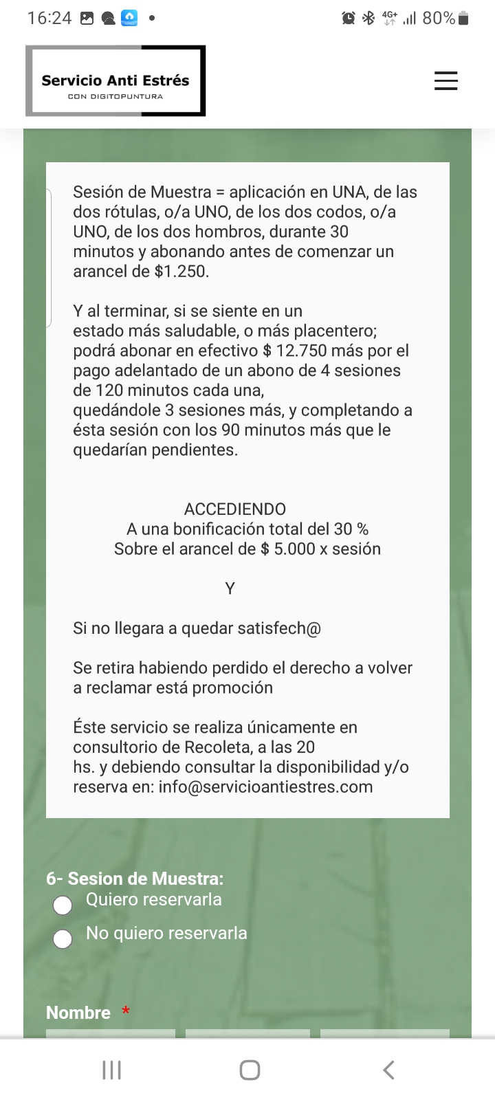 RESERVAS: info@servicioantiestres.com